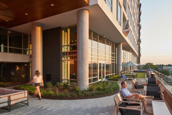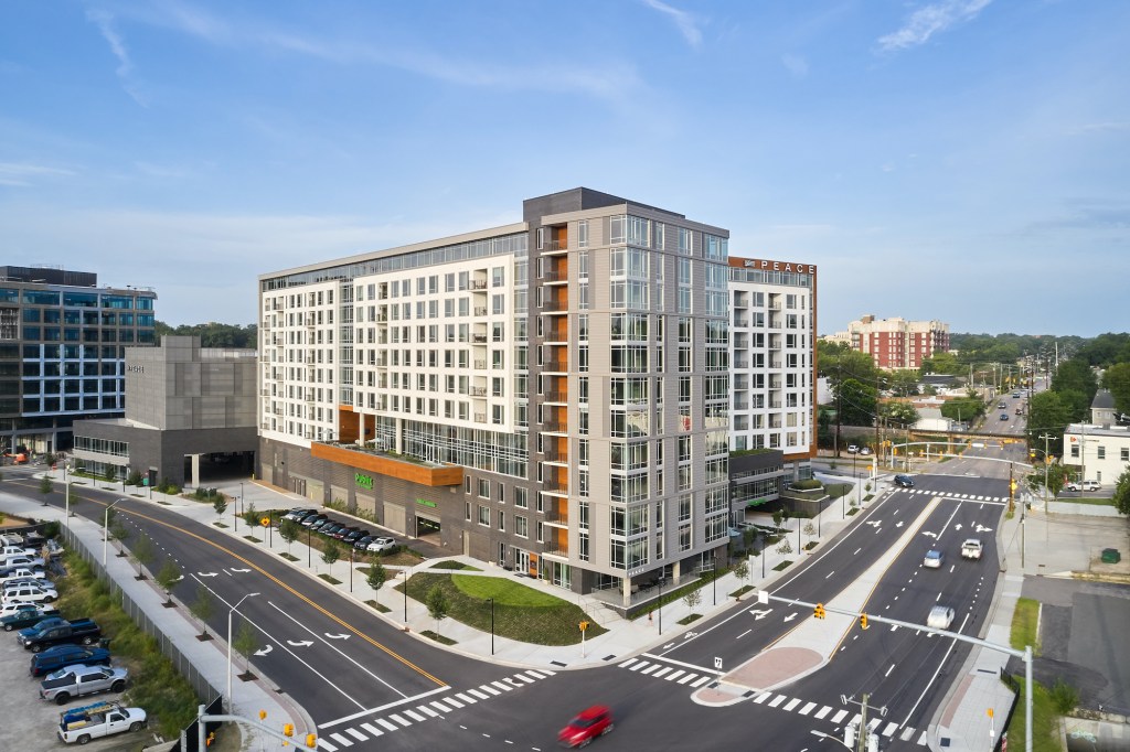 The Peace Raleigh Apartments is bringing more than housing to downtown Raleigh, North Carolina. The development is the first phase of a project to reestablish the northern gateway to downtown and to rejuvenate one of the city’s oldest neighborhoods, Smoky Hollow. It’s also meeting another basic need for the community—alleviating a food desert by integrating the first full-service downtown grocery story.