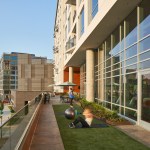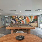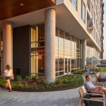 Its eclectic palette and composition of exterior building materials create a contrast of dark-toned bricks, charcoal-colored metals, natural wood siding, and a white outlining of the central core of the building. The mix of balcony sizes, shapes, and materials provides playful exterior features. These design elements along with a locally crafted mural wall capture passers-by’s eyes. The unit plans also distinguish the building from others. The design team developed more than 30 floor plans to provide different types of units to meet residents’ wants and needs.