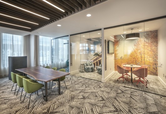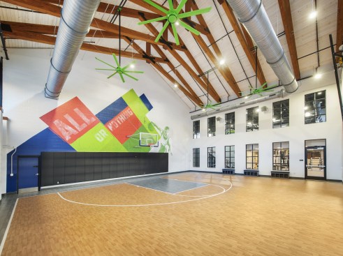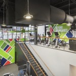 Architect BKV Group made intentional design selections to incorporate materials and palettes that reflect both the qualities of Penn State and the surrounding landscapes of the Rothrock and Bald Eagle state forests. Two distinct living wall systems in the clubhouse pay an homage to the outdoors and add a clean and refreshing ambiance. Throughout the building, clean lines and natural materials also are complemented by bold areas of color and branded graphics.