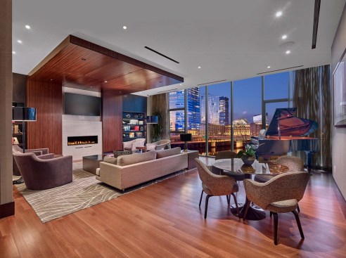 In addition to floor plan flexibility, the developer aimed for luxurious design and five-star amenities. From the private motor court and valet service to a 60-foot lap pool and drying deck, residents enjoy an abundant package of luxury features. Even a hospitality suite is available for residents to accommodate additional guests.