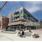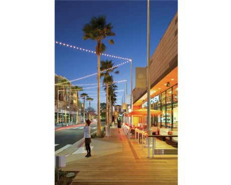 What may be most novel at Runway is the plan’s horizontal and vertical elements, says Scott Johnson, FAIA at Johnson Fain. The plan consists of a T-shaped Main Street with retail anchors at the extremities and in-line shops between.
