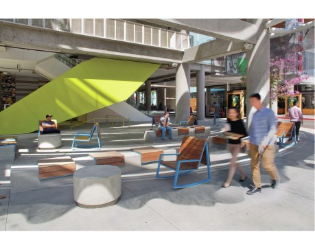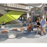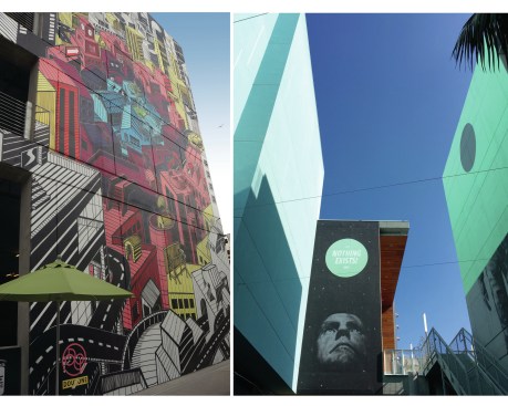 There’s also a 100-foot-high kinetic art installation that ripples when it’s windy and helps camouflage the parking structure. Murals add scale, color, and variety to pedestrians’ visual experiences.
