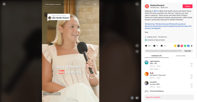 According to LV Collective, The Best Four also didn’t just inform, it engaged students. It also covered every kind of housing on and near campus, not just Rambler communities. Season One focused on student life at UT Austin, covering dorms, off-campus apartments, and Greek housing. Season Two moved to Ohio State with the same student-first, story-driven format. Guests included student leaders, campus influencers, and recent graduates who shared their housing experiences.