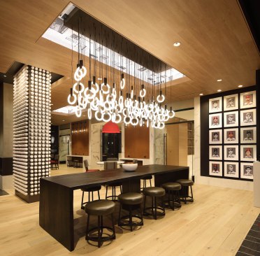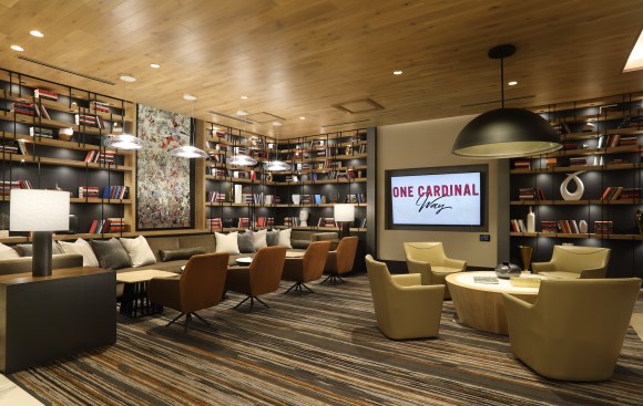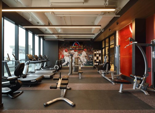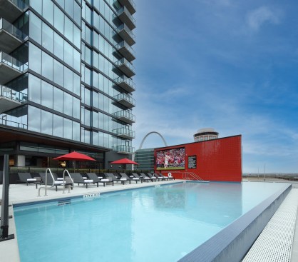 Due to its prime location just beyond Busch Stadium’s outfield, the design team—including architecture firm Hord Coplan Macht and interior designer RD Jones + Associates—integrated touches of Cardinals red and artwork with baseball nods throughout the project, including the 30,000 square feet of interior and exterior amenity spaces, to create a unique community that appeals to super fans and urbanites alike.