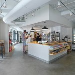 The building is set close to the street to engage passersby on the sidewalk and encourage them to patronize Treadmark’s retail establishments. The use of large ground floor storefront windows is inspired by garage bay doors, lending an industrial look and a functional nod to the site’s industrial roots.