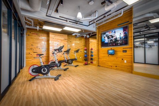 The 20,600 square feet of indoor and outdoor amenity space create spots for residents to work, exercise, relax, and socialize. An indoor–outdoor fitness center with yoga, a spin studio, and turf allow tenants to personalize their own workouts.