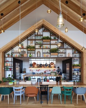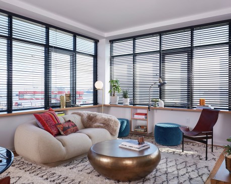 The project isn’t short on amenities that make the development feel like an all-encompassing neighborhood. In addition to the public outdoor spaces, URBY has a bodega, a communal kitchen with flex spaces for cooking classes, an entrance café and coffee shop, a two-story fitness center, a pool, and an urban farm above the parking garage. The site is adjacent to the Staten Island Railroad Station and a four-minute subway ride to the Staten Island Ferry.