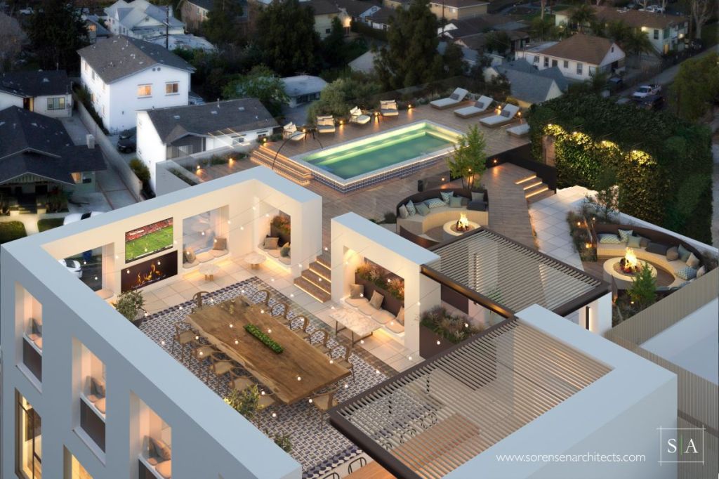 Slated to be Mosaic Investment Partners’ largest community, the $56 million project will become Tessera, a seven-story, 53-unit development with 260 beds. “Tessera will provide USC students with a unique blend of luxury, convenience, and community,” George Alva, co-owner of Mosaic Investment Partners, states. “We brought in an award-winning architect and a high-end design firm that specializes in luxury homes in Malibu and Pacific Palisades to help us create what we expect to be a stunning, world-class building with resort-like common area spaces, including a highly amenitized rooftop with a pool, multiple fire pits, a large outdoor dining area, and a dog park.”
