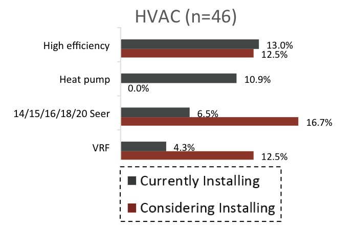 Over 10% of the respondents said they’re installing heat pumps, while another 4.3% said they’re installing variable refrigerant flow systems.