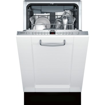 Bosch offers six different dishwasher models that measure only 18 inches wide. The 18-inch Panel Ready Dishwasher from the 800 series (shown) doesn’t sacrifice loading space in a smaller model—a third rack offers offers 30% more loading capacity for small items. The three racks can be configured in nine different positions depending on the load. The dishwasher runs quietly at 44 dBA, prevents leaks while running, and shines a light on the floor so residents know when the appliance is operating. The Panel Ready model can be customized with a front panel to match existing cabinetry. Two other 800 series 18-inch models with three racks are available in a stainless steel finish, while the 300 series models with two racks are available in a stainless steel, white, or black finish.