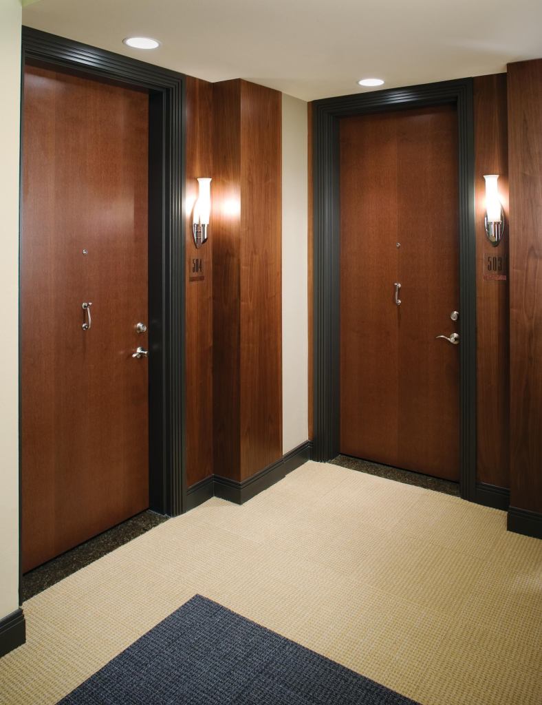 Because sconces are available in a variety of materials, styles, and sizes, they can be incorporated into many different areas within a multifamily community. In particular, Faulkner likes to use sconces for corridors and common areas. In Dallas, she installed sconces throughout The Heights at Park Lane, a 325-unit mixed-use project (shown above).