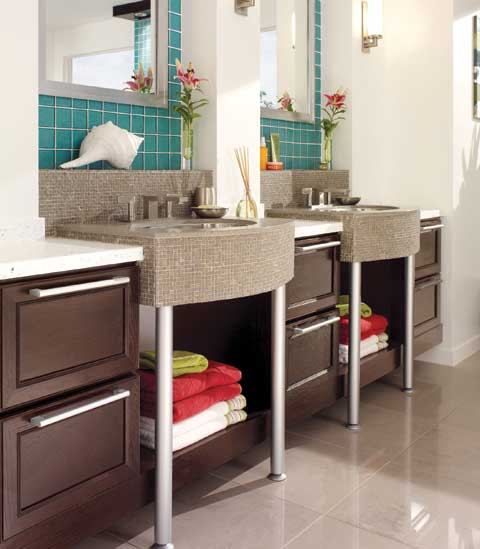 SLEEK AND SOPHISTICATED: A standout choice among Merillat’s vast Masterpiece collection–30 door styles, seven wood and laminate choices, 46 finishes, 56 glazes–is the just-released Peppercorn, a dark brown semi-transparent finish with black overtones. Both oak and cherry door styles are available. For more information, call 517-263-0117 or visit www.merillat.com.