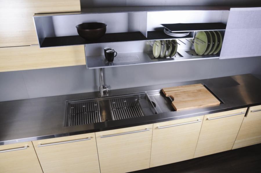 Tonusa. Created in collaboration with designer Fu-Tung Cheng, Elements contemporary cabinets offer elevated design at a moderate price. Designed to evoke warm modernism, the line includes a variety of luxurious and sustainable materials such as FSC-certified Plyboo bamboo doors, 3-form resin sliding panels, and recycled aluminum cabinet boxes. The series offers flexible component layout, integrated accessories, and soft-close hinges and door runners. 626.961.8700. www.tonusa.com. —Nigel Maynard