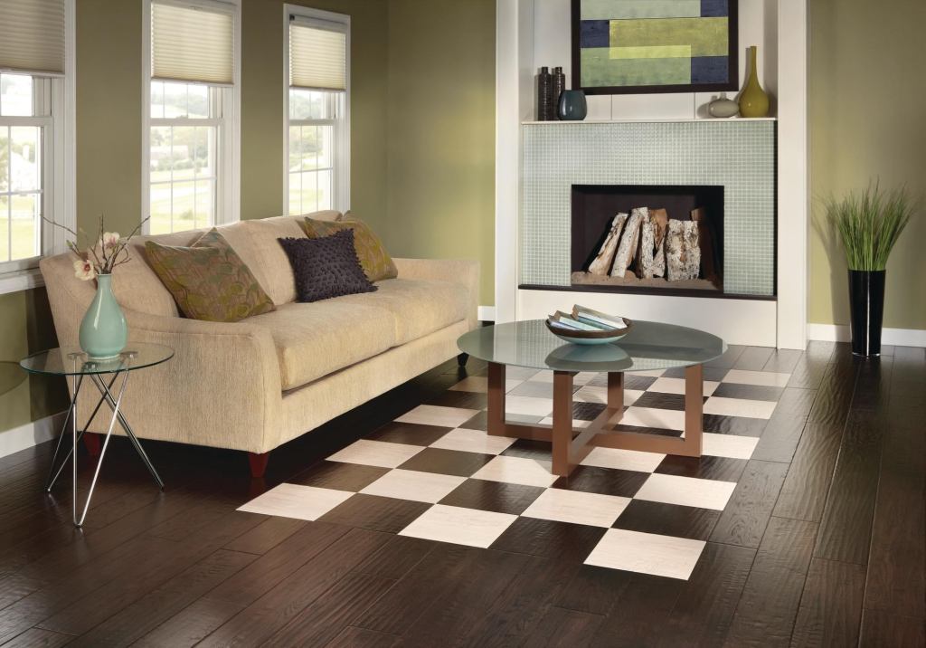 Earthly Elements engineered hardwood flooring comes in 12-inch squares and 12-inch-by-24-inch rectangles, in addition to a 6-inch plank, allowing installers to mix and match colors and shapes for a custom design, such as a checkerboard pattern. The flooring comes in oak in five colors and in hickory in three colors and is FloorScore certified. Mannington | 800.356.6787 | mannington.com.