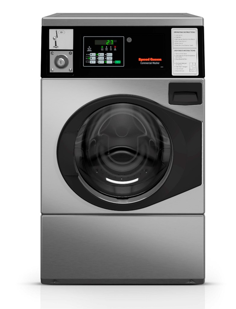 The machine is also designed for improved ergonomics and easier operation, with a tilted control panel designed, an extra-wide 15.5-inch door opening and 180-degree door swing. Speed Queen’s new front-load washer is compatible with coin or card operation.