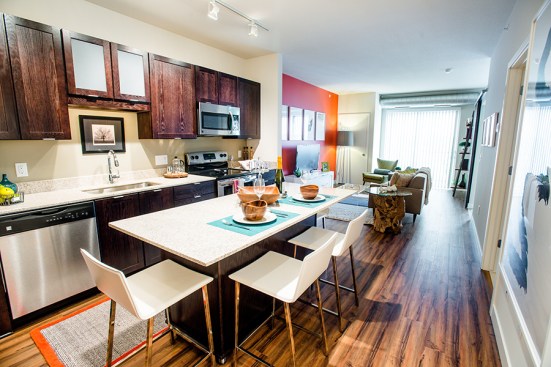Track 29’s mostly one- and two-bedroom units range from 572 to 1,493 square feet. Ninety-five percent have been leased since the property’s completion last August, and 20 of the 27 condos at adjacent Track 29 Lofts have been sold. Onetime council member Lisa McDonald attributes the area’s enhanced status to the city and county working together. “They didn’t give a direct subsidy but created a framework to boost green space, which leads to investment and building,” she says.