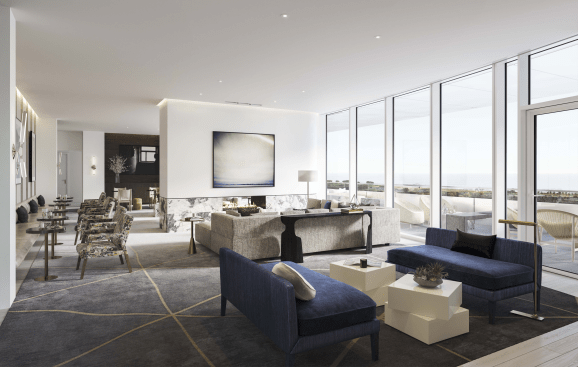 On the 72nd floor, a 19-foot, floor-to-ceiling winter garden features year-round plants, seating, and 180-degree views of Lake Michigan and the Chicago skyline. The tower’s full-service bar and lounge, Club 1000, will provide residents with cocktails, live music and events, along with a wine-tasting room, private wine storage, a private dining room, and a sky terrace with telescopes and sculptured benches.