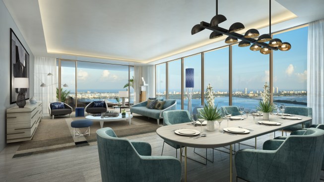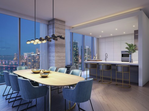 The units—with only two per floor—range from three to five bedrooms and include den options, high ceilings, and floor-to-ceiling glass windows. Each residence includes two private terraces boasting unobstructed views of Biscayne Bay, Miami Beach, and downtown Miami. Prices range from just below $1.4 million to $14 million, with sizes spanning 2,300 square feet to 11,000 square feet. The average price per square foot is $775, according to this article from The Real Deal.