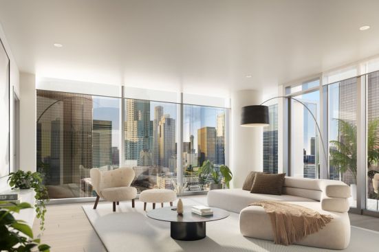 The 438-residence high-rise tower offers al fresco dining areas with fire pits, barbecue grills, and a Zen hammock garden. The fitness center offers functional training equipment, including an outdoor workout zone with a weighted sled, battle ropes, and HIIT equipment. Residents will also have access to complimentary fitness classes and a hot yoga room bookable via the Figueroa Eight resident app.
