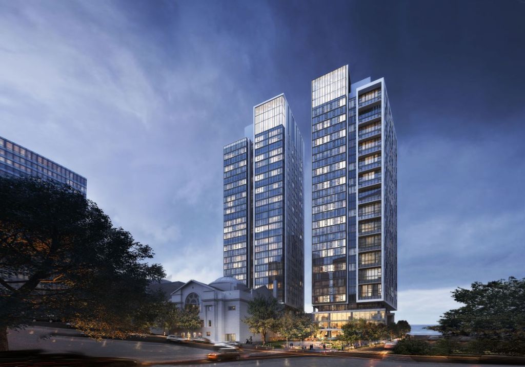 Underground holds an eight-floor parking structure with 44 electric vehicle charging stations, with the option of up to 110 EV parking stalls in the future. Sharing the block with Town Hall’s culture and performance center, the towers include 6,883 square feet of retail space.