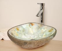 This sink is made from cobblestone and green onyx chips.