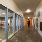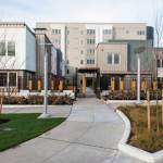 Raven Terrace is part of a vision for the revitalized Yesler Terrace neighborhood in Seattle. Targeted at families of varied backgrounds, local firm Weber Thompson designed the 29,925-square-foot complex to comply with a new zoning code that incorporates sustainable targets, reduced parking ratios, and design guidelines. The massing of the structure, which was built by Walsh Construction, works with the area’s sloped streets to create a pedestrian-friendly complex that has a strong street presence while still softening the imposing density of 120 units per acre. A seven-story tower holds the corner, and dual rows of two-story townhouses create a courtyard.
