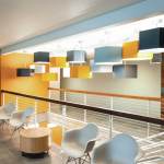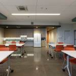 Retail space and a community room at the ground level link the building’s occupants to the neighborhood. These shared spaces, both inside and out, feature a neutral materials palette punctuated with bright pops of color.