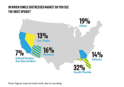 It turns out that South Florida is seen as the land of opportunity for companies looking to invest in “challenged” assets. Thirty-two percent of those surveyed said the Sunshine State holds the most potential for upside among “distressed” markets. That’s up from 28 percent last year.