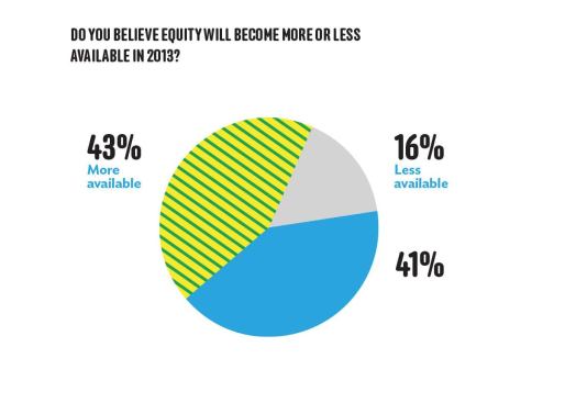 The availability of private and public equity is expected to remain on keel, as a whopping 84 percent of respondents believe that, looking ahead, private equity will be either more available or available at around the same level as this year.