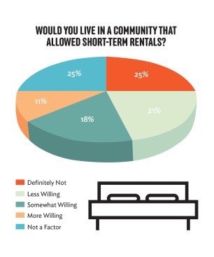 This perception is somewhat balanced by the 25% of respondents who said the presence of short-term rentals isnât a factor in their decision of where to rent, while 11% said theyâre more willing to rent at communities that allow short-term rentals.