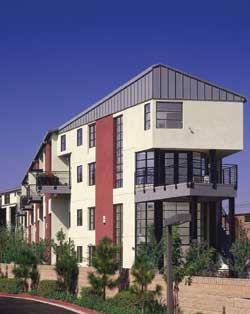Faced with an unusual, triangular site with limited space, architect Rob Steinberg of The Steinberg Group in San Jose, Calif., looked to the imagery of the surrounding area—which includes a Japanese community as well as the nearby railroad—for design inspiration. Nestled in an industrial area, the Markethouse Lofts were designed to resemble a series of boxcars, a sort of tribute to the trains that run nearby. Developer Sares•Regis helped bring the $12 million project to life.