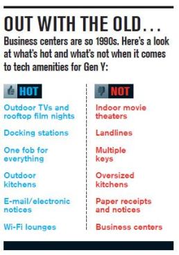 Here’s a look at eight ideas for amenities with tech-centric Gen Y in mind: