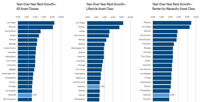 Lifestyle rent growth has outpaced RBN rent growth in 17 out of 30 cities on a T-3 basis. Yardi notes that rent control legislation has recently passed in New York and Oregon, largely affecting older RBN stock, and predicts that an expansion of rent control may limit RBN rent growth and narrow the gap between rent growth for luxury and market-rate properties.