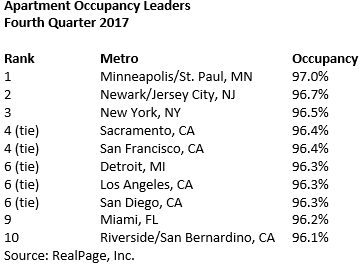 National apartment occupancy stood at 95.1% at the end of the fourth quarter, unchanged from the year-ago performance.