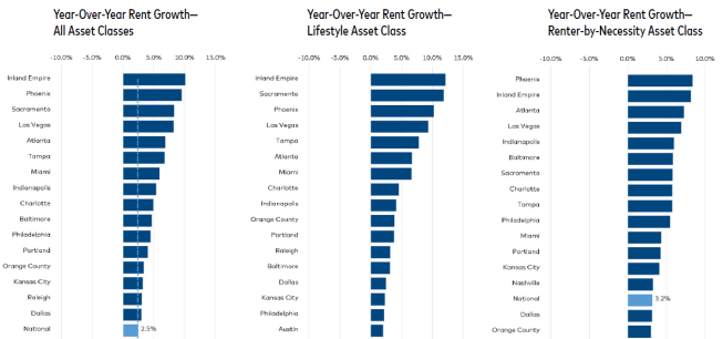 All of the top 30 markets showed positive month-to-month rent growth in May, and 90% experienced growth over 0.5%. New York had the strongest month-over-month gains by far at 3.4%, followed by Chicago, Las Vegas, and Portland, Oregon, at 1.1%.