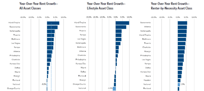 Overall, Yardi does not see a direct correlation between rent movement and occupancy. Stronger correlations have been found in migration trends or rent costs; areas with the highest costs of living have lost the most residents.
