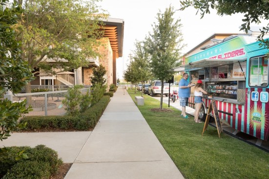 The Parkside at Craig Ranch in McKinney, Texas, designated two parking spots next to the community’s leasing center and clubhouse for food trucks only. Every Tuesday and Thursday from 5:30 p.m. to 8 p.m., food trucks, including Nomadic Grill, Greek Girls Goodies, Surf Franks, and EZ Sliders (pictured), are welcomed to the spots to sell their offerings to the neighborhood’s residents.