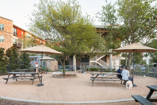 Outdoor areas equipped with grills, pools, and lounge seating are standard for many multifamily communities nowadays, but this garden-style walk-up, developed in phase one of a larger master plan by Columbus Realty Partners and JHP Architecture, has a feature that enhances the idea: food trucks.