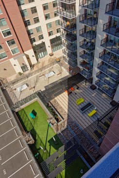 AVA NoMa comes equipped with its own WAG Pet Spa and WAG Pet Park. The spa has two wash tubs, a drying station, a grooming station, and direct access to the courtyard where the pet park is located. The park, which allows pets to roam and play on dog agility equipment, is lighted for evening use and features bench seating for owners, doggie bag stations, and drinking fountains with low and high access points for both pets and people.