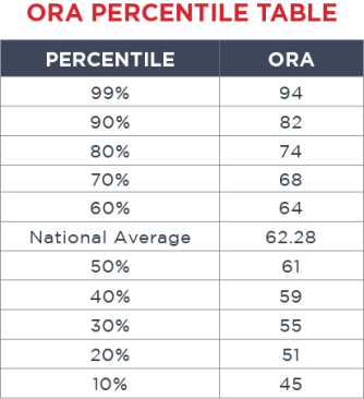 The ORA score is an aggregate compilation of a property’s ratings across various review sites and ILSs. Each month, J Turner Research monitors the online ratings of more than 128,000 properties nationwide. Using a statistical model, a single score based on a scale of 0 to 100 is assigned to each property. This score serves as a benchmark to compare a company’s individual properties and portfolios nationally, regionally, and against the competition.