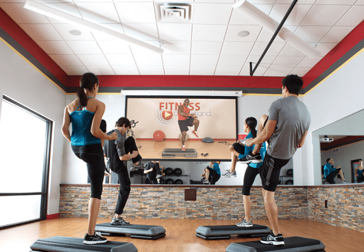 choose from any one of hundreds of different workouts from huge jumboscreens,â