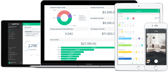 Happy Inspector provides a platform for inspectors to document their findings and manage their forms. Happy Manage empowers field managers to examine all inspection data and provide assignments to individual inspectors across multiple properties. And Happy BI allows operators to monitor the status and condition of their properties in real time.