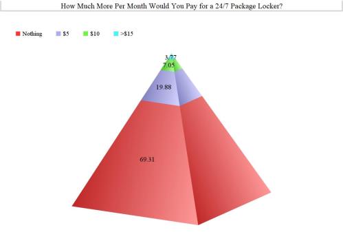 Yet, nearly 20% of those polled said they’d be willing to kick in another $5 per month to live in a community with package lockers, while 7.05% said they’d absorb an extra $10 per month. Further, 3.77% of respondents were willing to spend at least $15 more per month for the amenity.